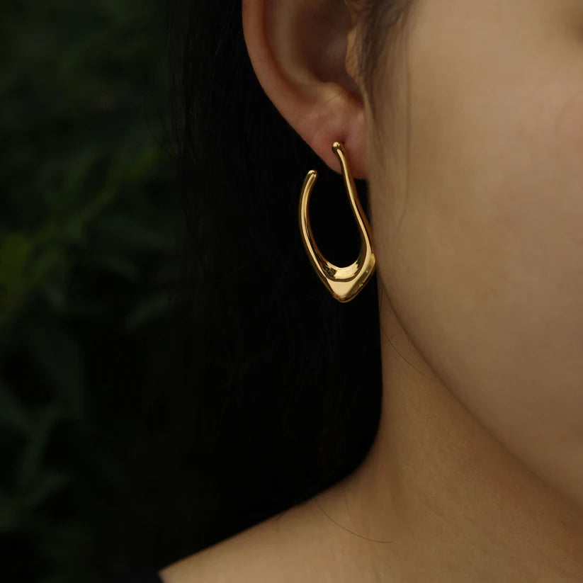 This unique shaped hoop earrings will add a cool dimension to your look. The perfect accessory for any outfit.