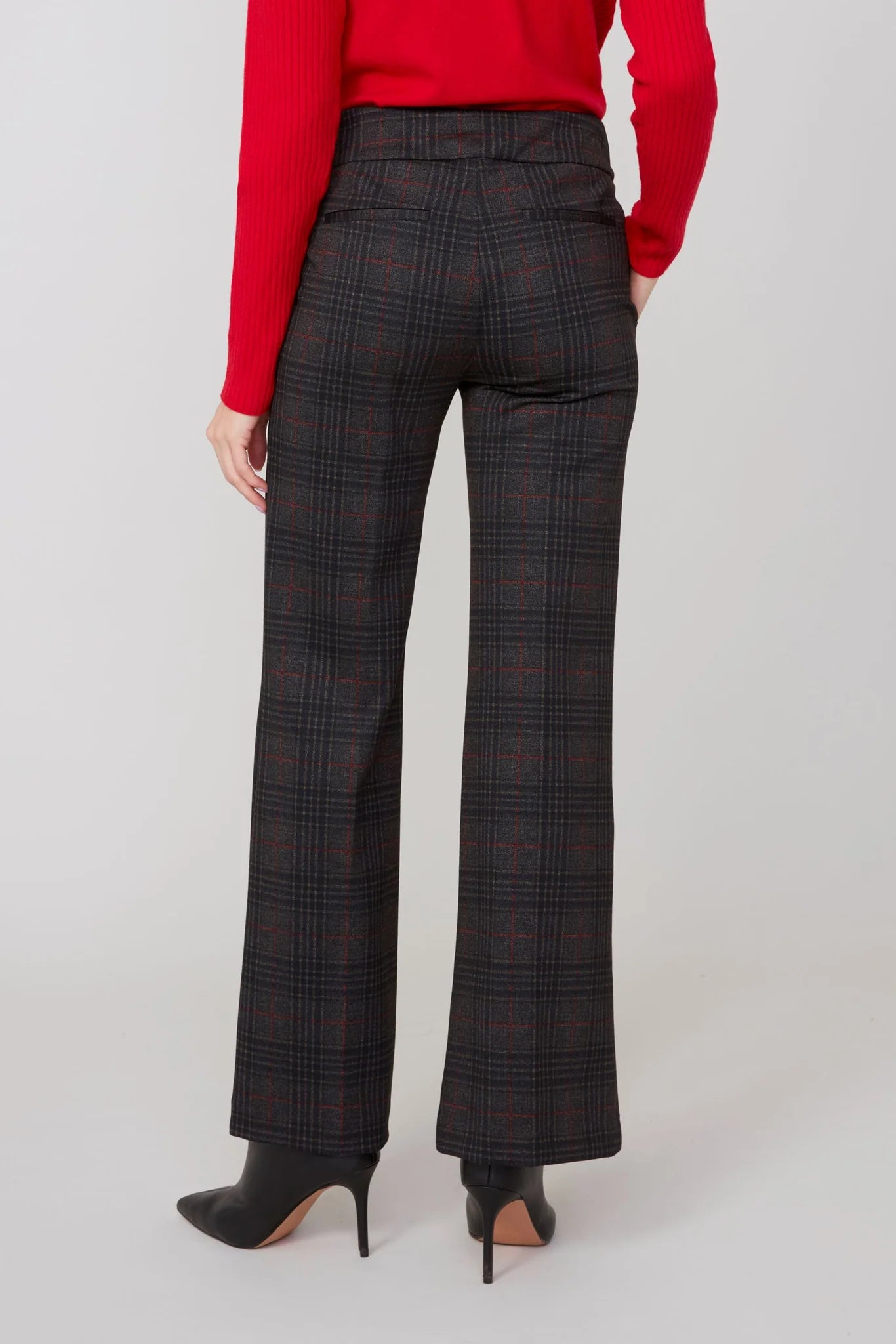 RENUAR // R10054 WIDE LEG PULL-ON PANTS PLAID SCARLET COMBO'