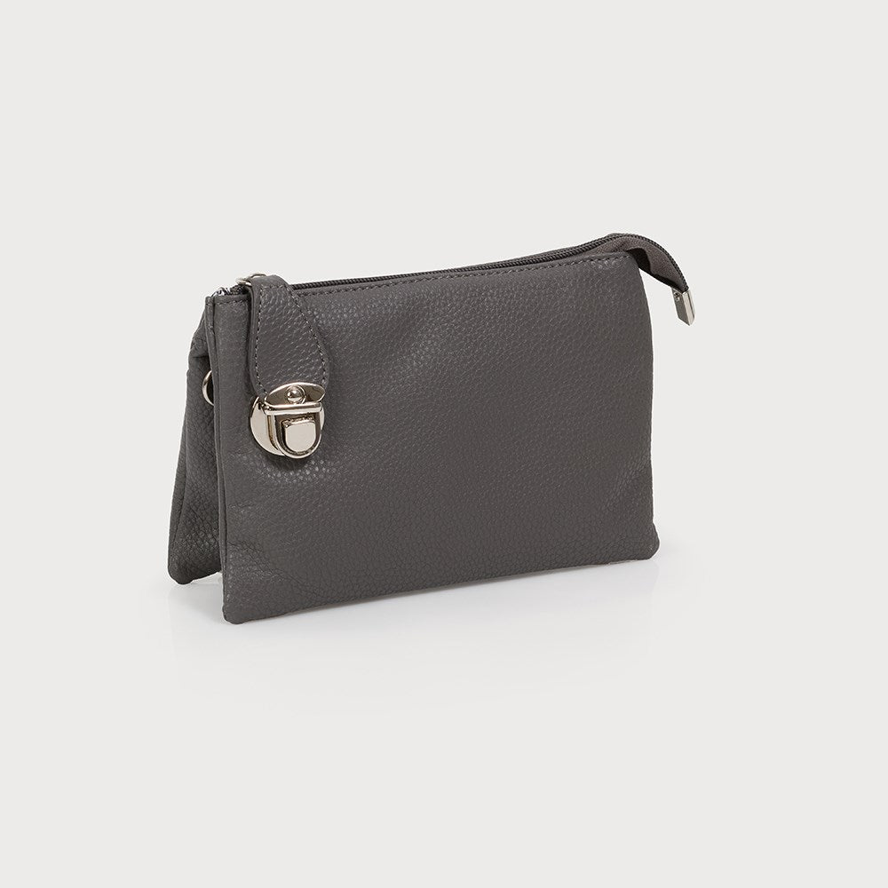 This 100% polyurethane clutch comes with a removable, adjustable shoulder strap, 3 zippered pockets and card compartment. It's lined with a black and white pinstripe. Available in many colours.