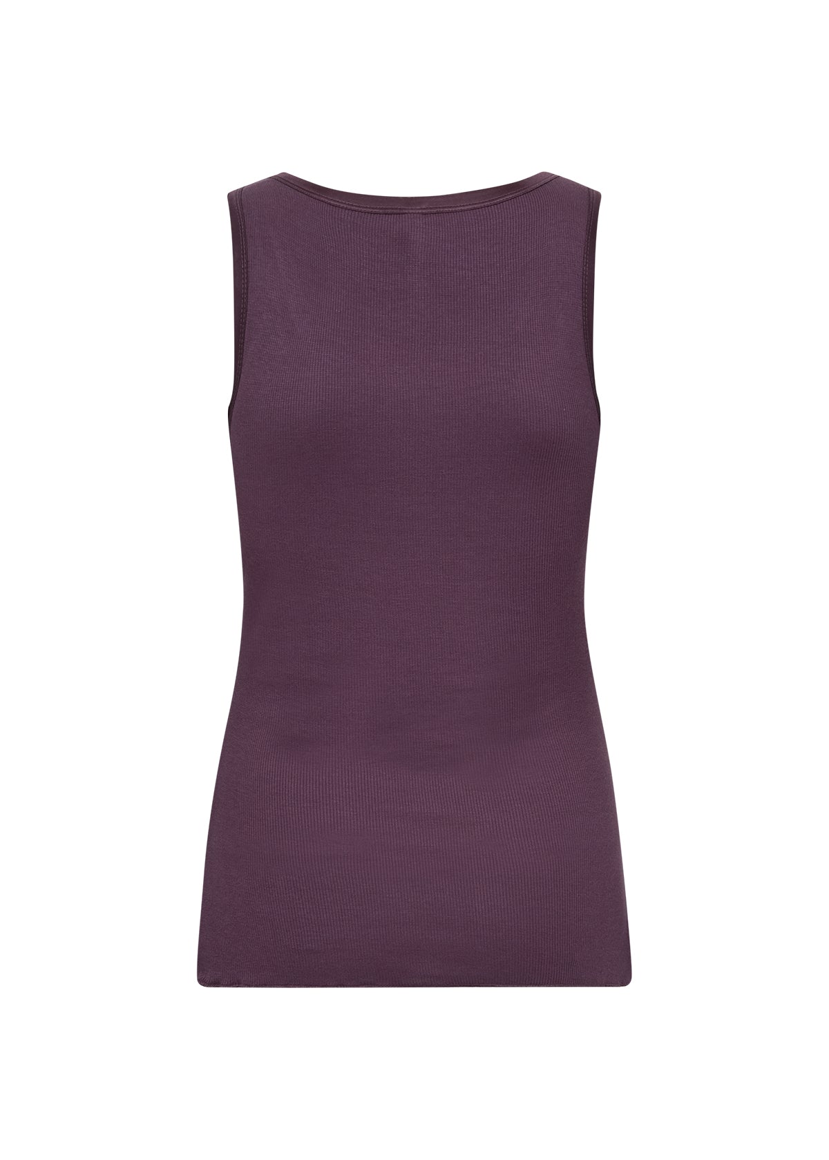 A basic tank in a nice LENZING™ ECOVERO™ viscose and elasthane blend quality. The tank has a classic fit, a round neck, a ribbed effect and a nice detail at the collar. This wardrobe must-have can be used under any upper.