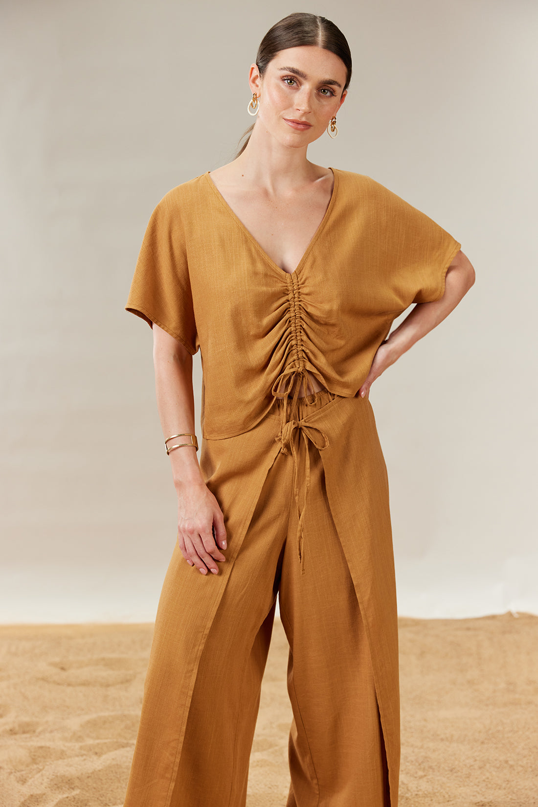 TRIBAL // 7039XX TIE FRONT SHELL BLOUSE SANDCASTLE