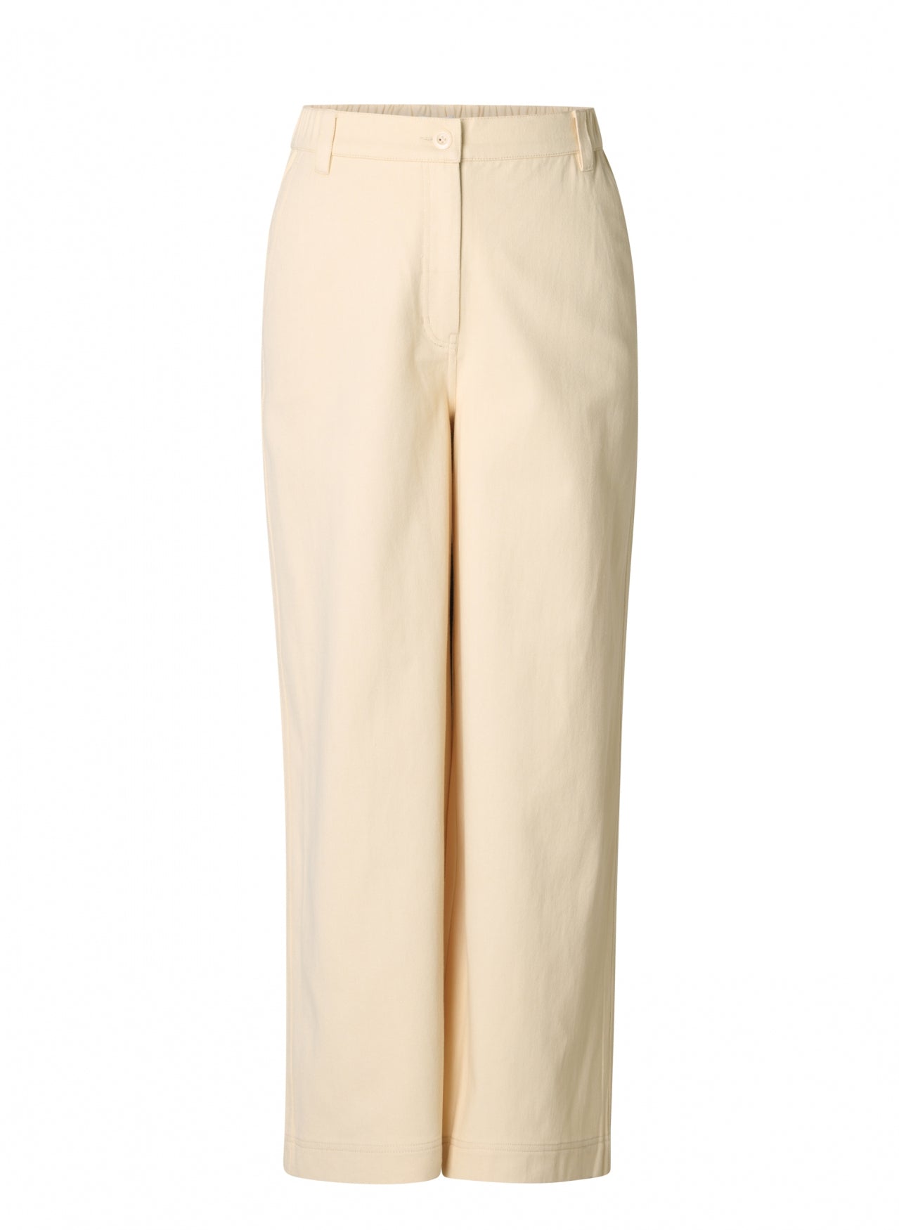 Straight leg button-up pant with an elasticized back, back patch pockets and belt loops.